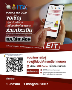 ขอเชิญผู้มารับบริการหรือมาติดต่อราชการร่วมประเมินคุณธรรมและความโปร่งใสในการดำเนินงานของหน่วยงานภาครัฐ (Integrity and Transparency Assessment : ITA) ประจำปีงบประมาณ พ.ศ. 2567 ของสถานีตำรวจภูธรไร่สะท้อน ประจำปีงบประมาณ พ.ศ. 2567